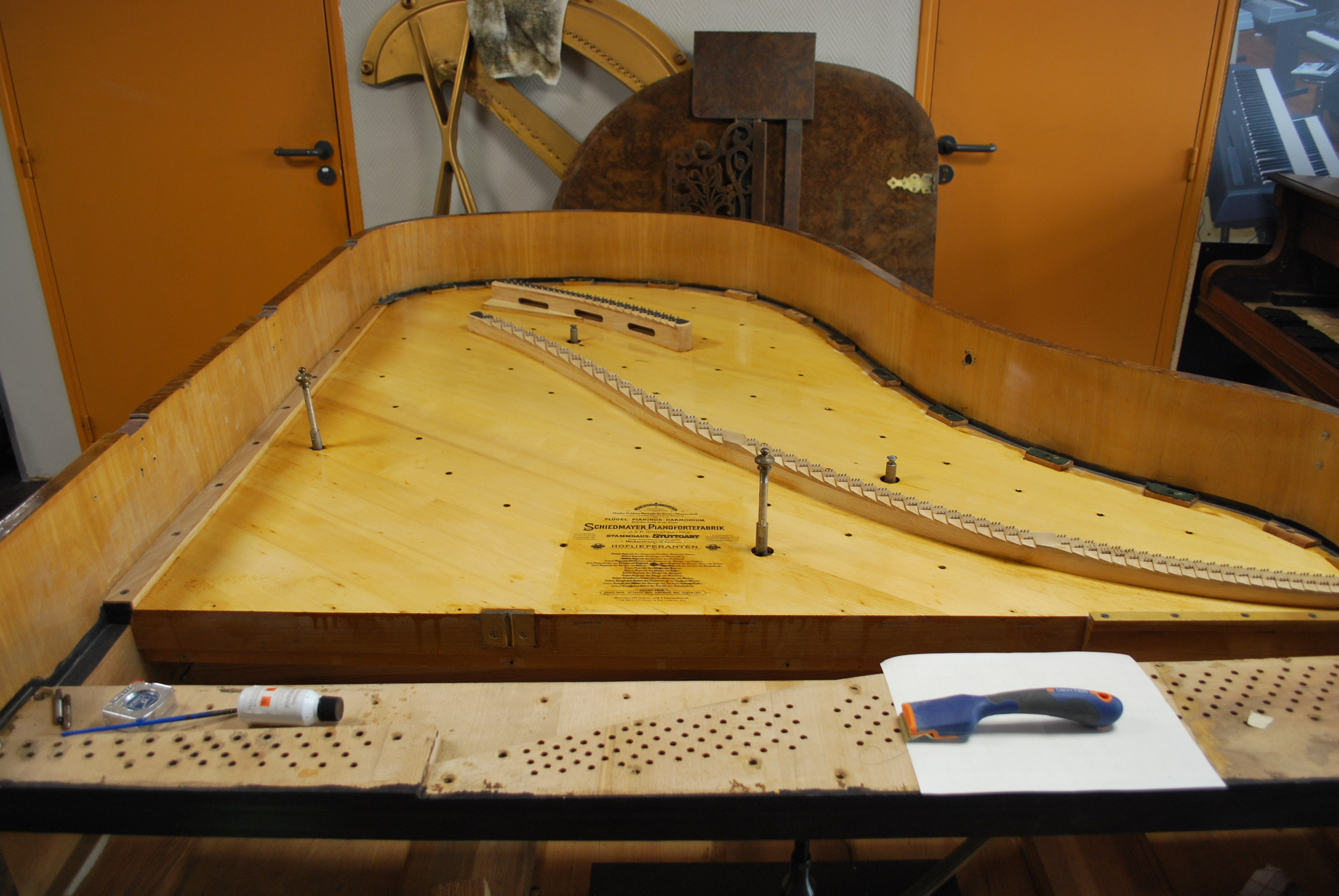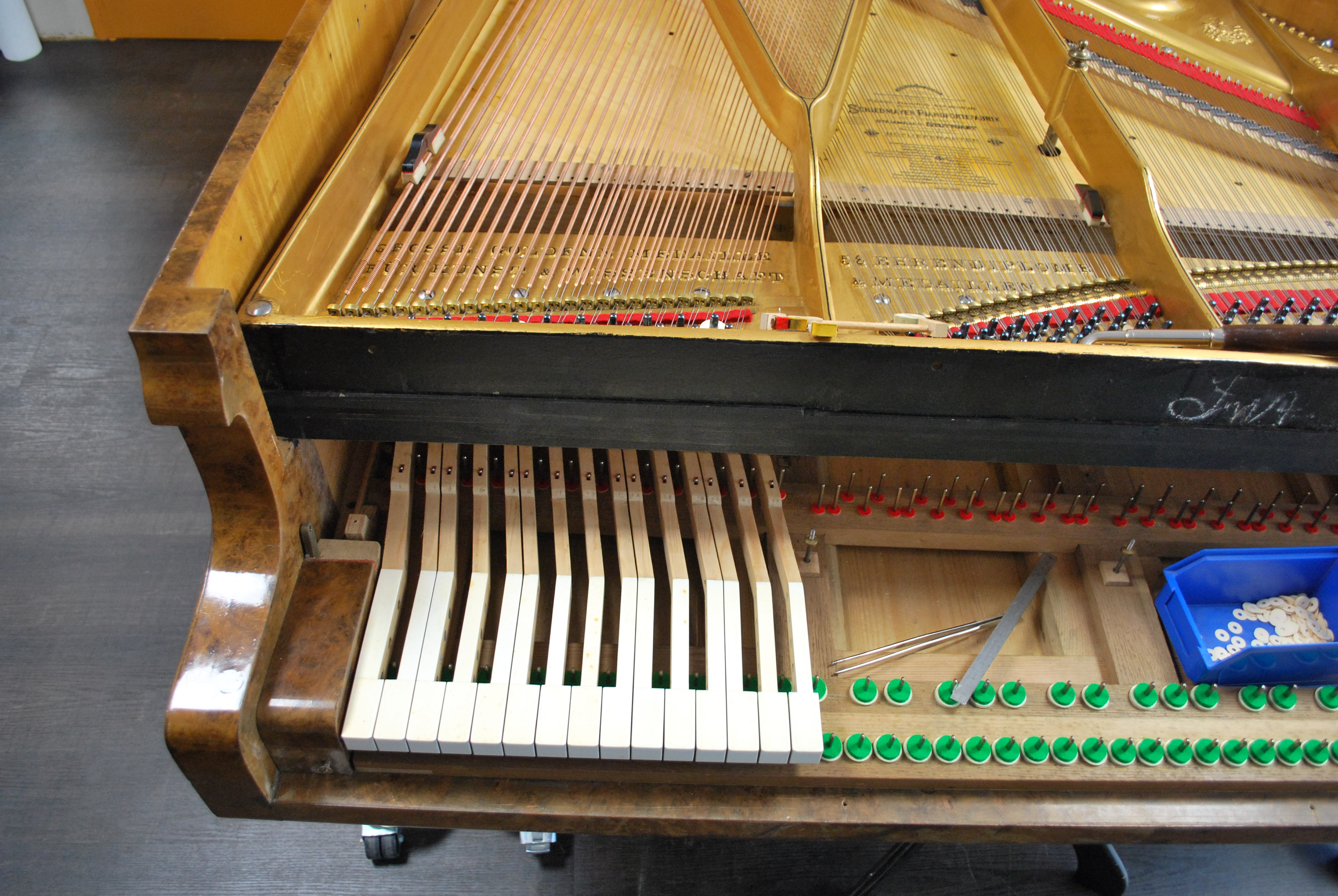 La restauration de ce Schiedmayer & Soehne nous a prit 3 mois, et nous étions tout émerveillé devant l’esthétisme de ce piano et devant le rendu sonore final de l’instrument.
